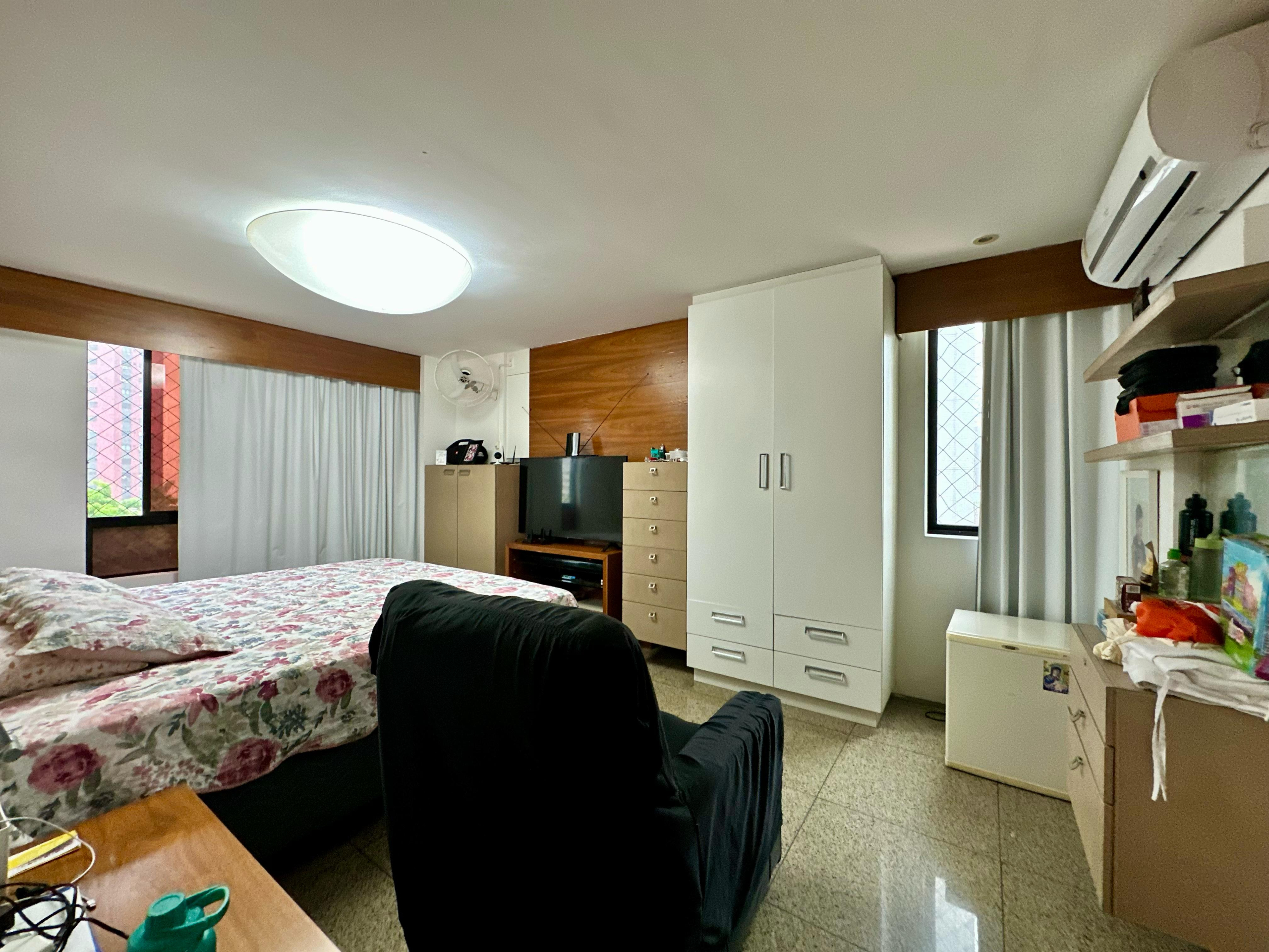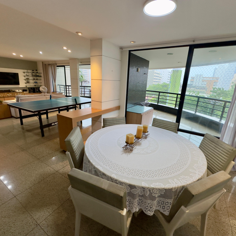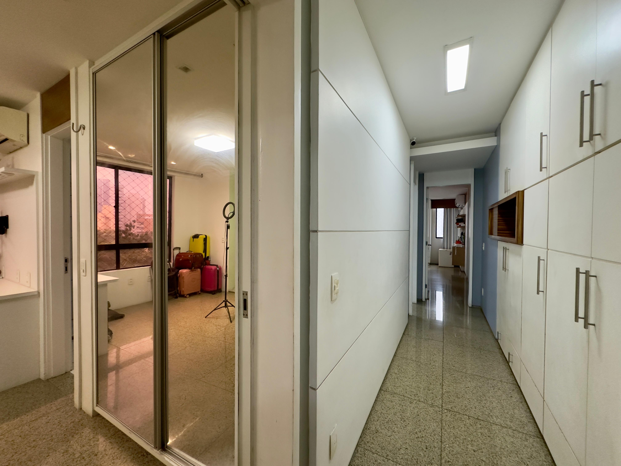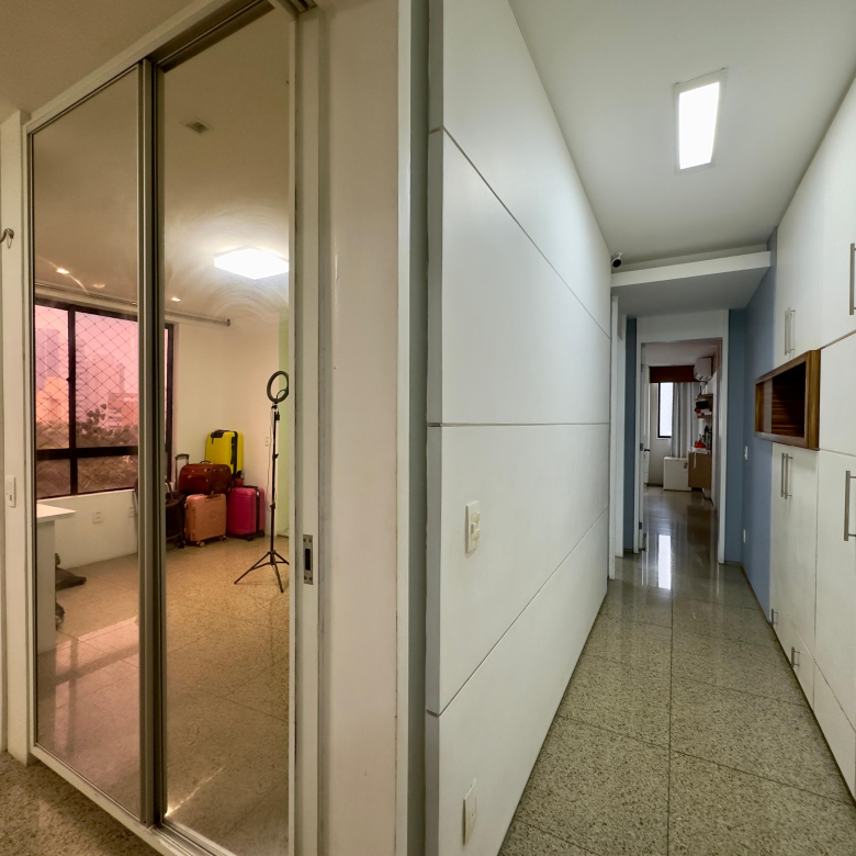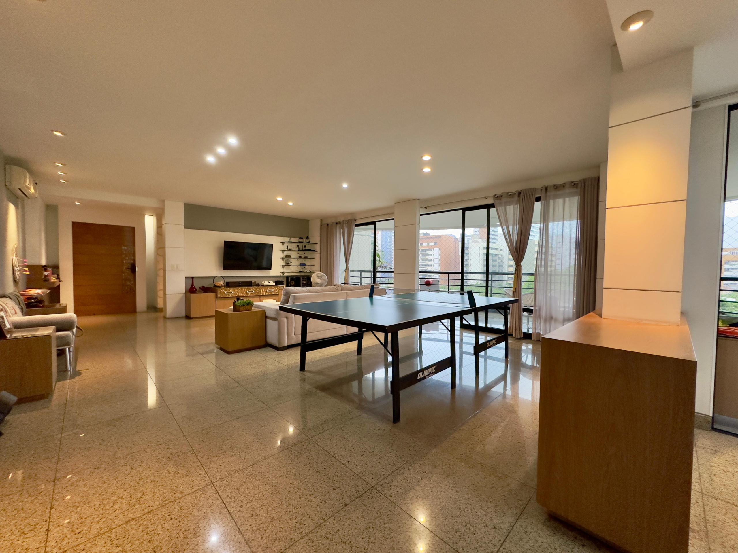 Com 03 amplas suítes, sendo duas delas com closet, o apartamento é ideal para famílias que prezam por privacidade e conforto. A sala é espaçosa e dividida em três ambientes, perfeita para receber amigos e familiares com estilo. O gabinete, com banheiro privativo, é um diferencial para quem precisa de um espaço adicional para home office ou até mesmo como um ambiente de apoio.